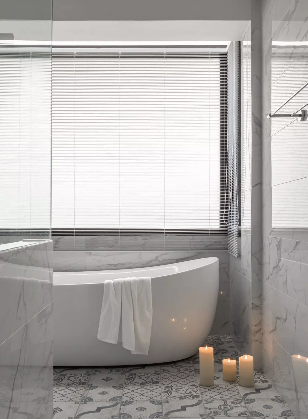 在这两个空间里设计百叶窗非常合适,不仅能轻松制造氛围,还丝毫不影响采光。