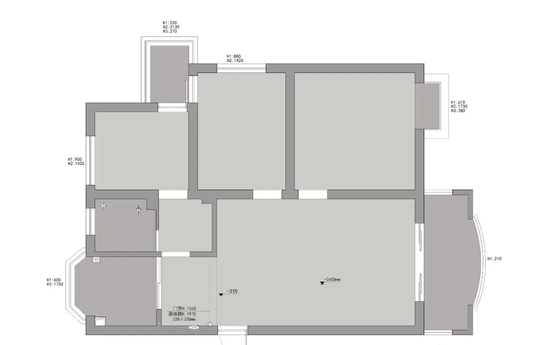 改造重点:1、厨房面积小,将收纳区延伸出来,并“无中生有”出一个独立玄关区。