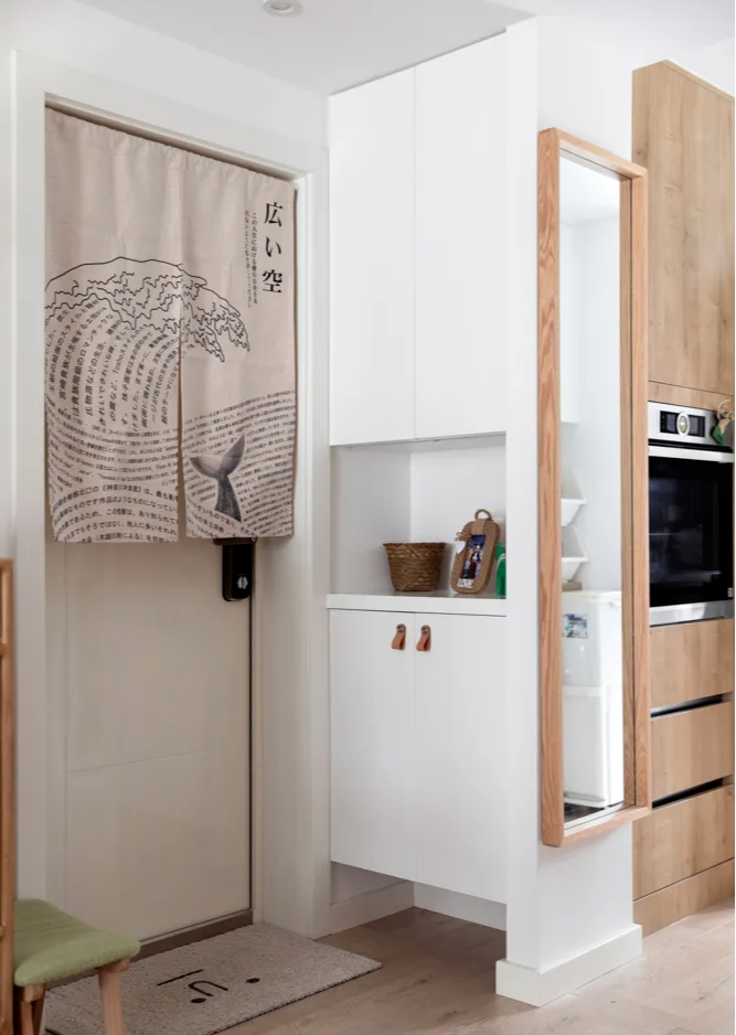 干净整洁的玄关,“仪式感”满满的日式门帘,营造出一种温馨放松的归家体验。