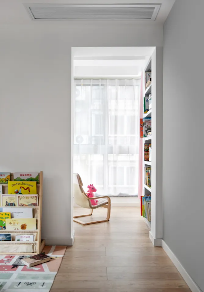 阳台做了壁龛书架,好的阅读和收纳习惯,要从小开始培养。